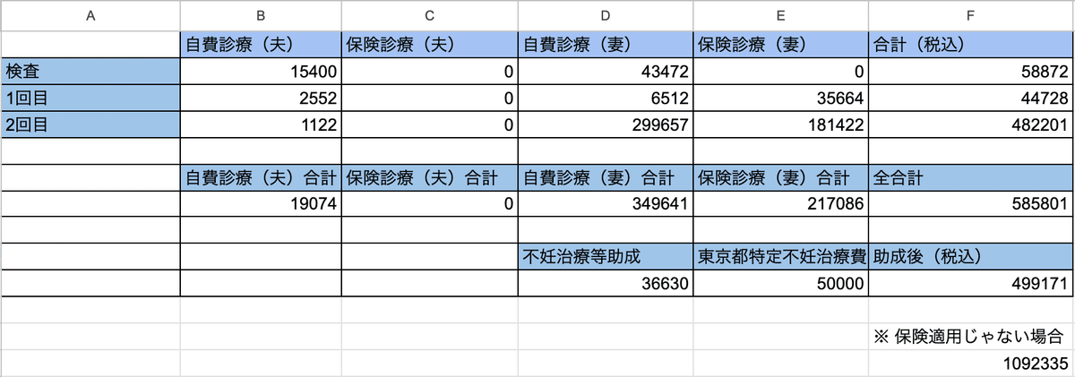 499,171円。約50万ほどでした。わたしは採卵2回、移植1回のチャレンジで、助成金を差し引いてこの金額でした。