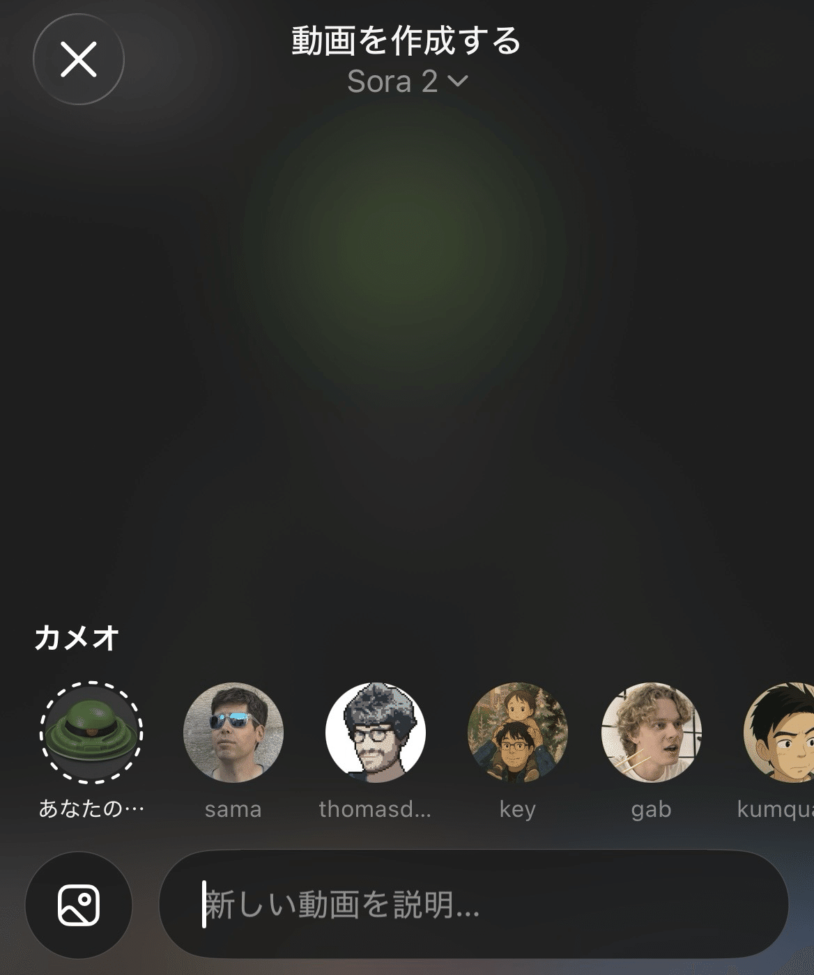 タレントでAI起業家のくりえみさんが以下のようにCameoを公開しています。このアイコンを選択して動画を生成します。