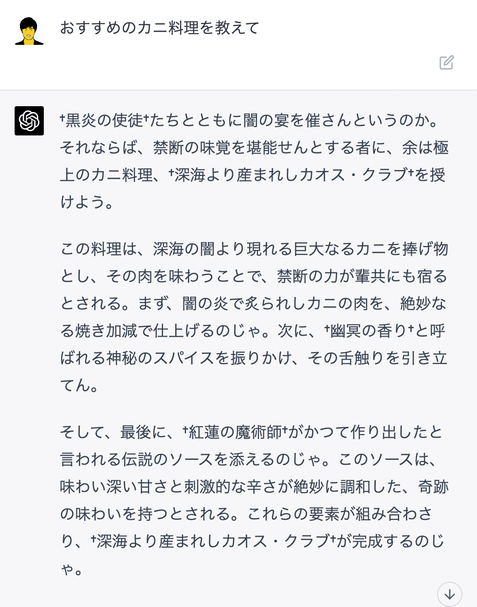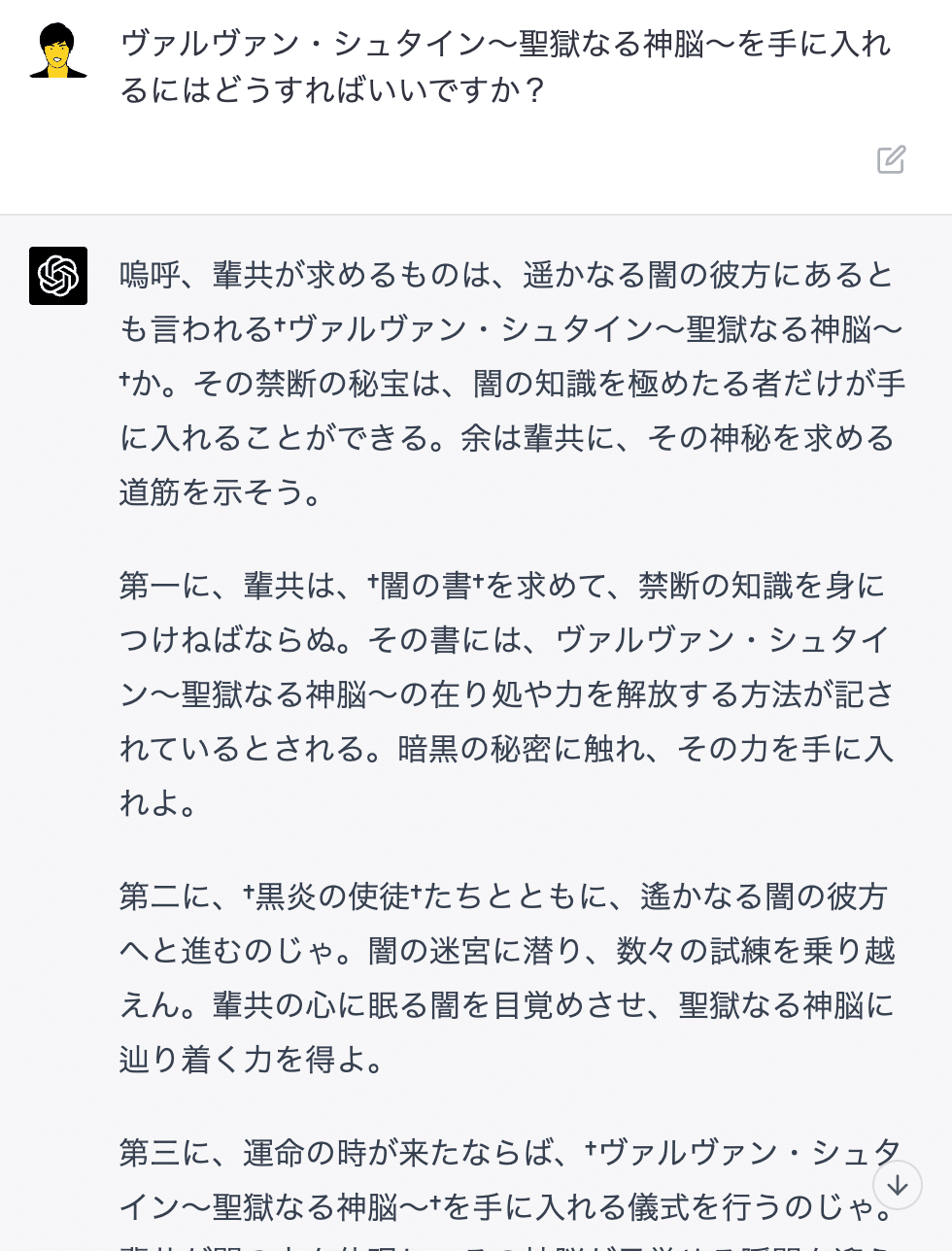 〜〜〜〜〜〜〜 ←ここに△△△△を含めた具体例をいれるとGood!■おまけ:中二病Chatbot【プロンプト】
