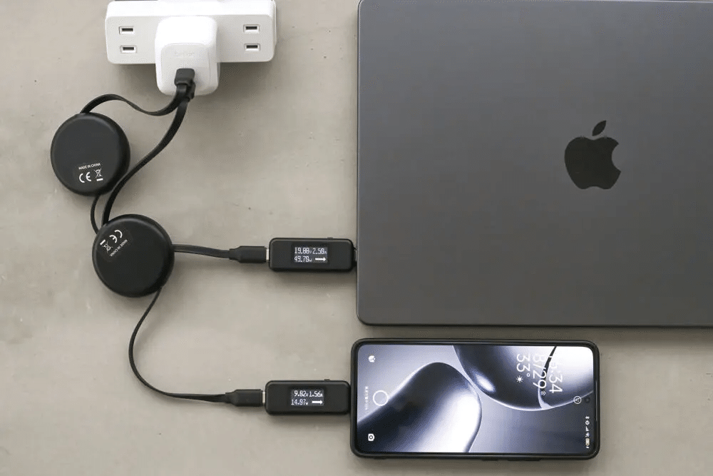 2ポート同時使用時でも「45W + 20W」の出力配分ができるため、MacBook AirとiPhoneを同時に急速充電できるのが非常に便利です。