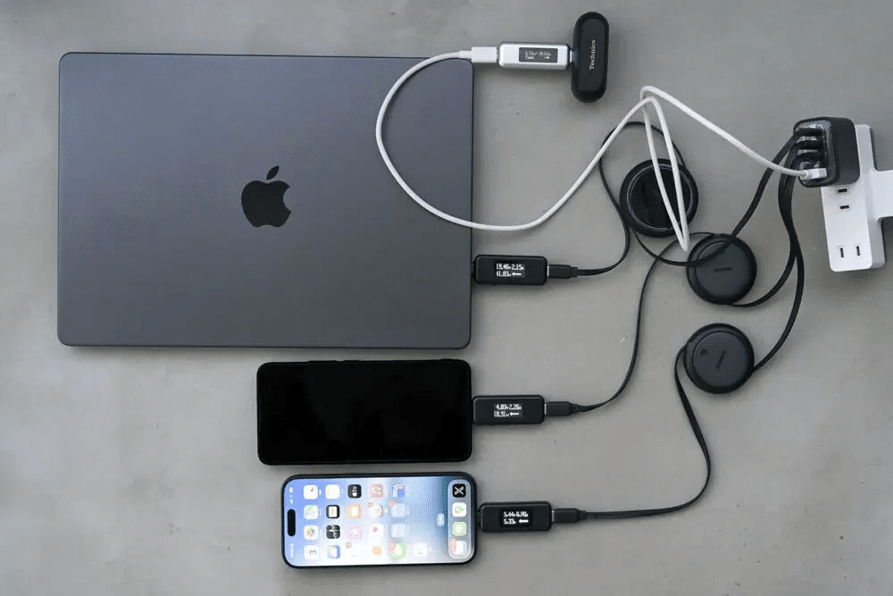 単ポート最大70W出力でMacBookを急速充電しつつ、空いたポートでスマホやイヤホンも同時に充電可能。