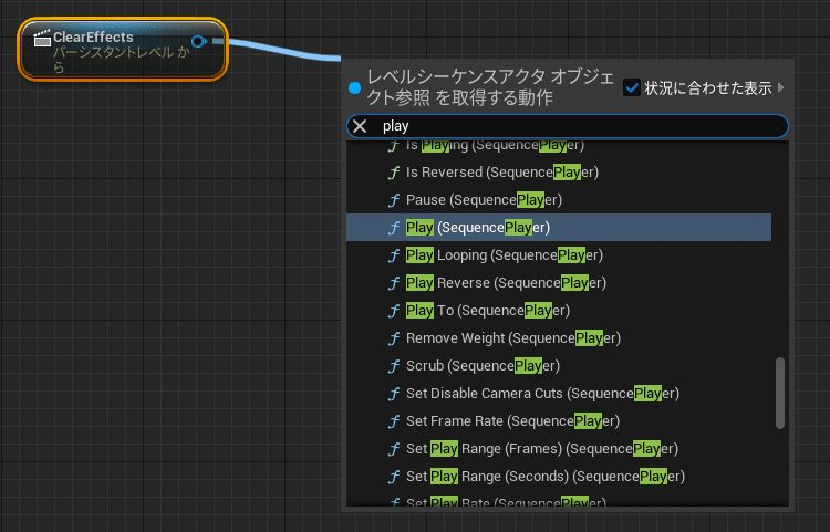 まずシーケンサーを再生する必要があるのでPlayノードを作ると思います。