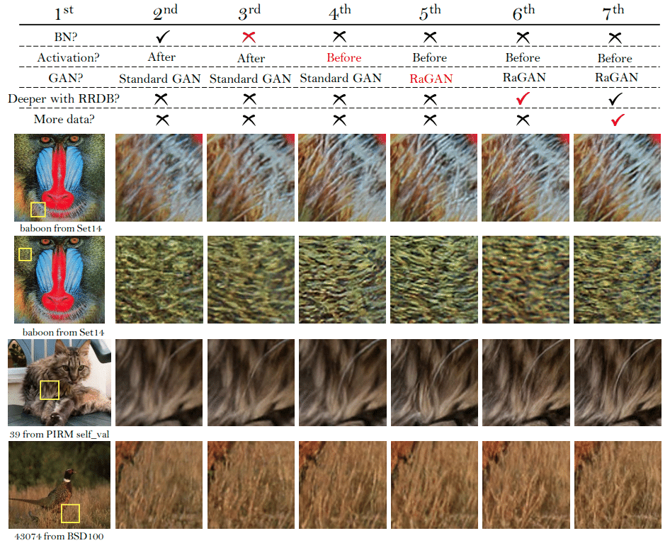 従来手法の SRGAN の Discriminator はただ入力画像が本物かどうかの確率を推定するだけでしたが、Relativistic GANのアプローチを採用することで、新しいDiscriminatorは、本物の画像が偽物の画像よりもどれだけ現実的であるかの確率を予測するようになりました。本物の画像と偽物の画像の両方の情報を利用して、よりリアリスティックな評価を行います。