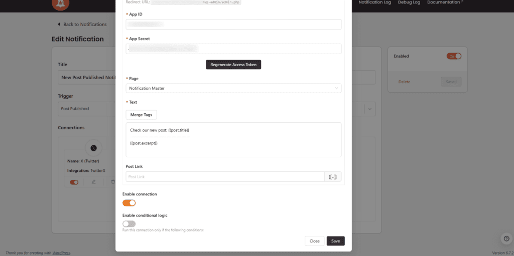 By following these steps, you can effectively add and configure a Facebook integration to an existing notification or create a new notification in Notification Master plugin. This feature enhances the flexibility of your WordPress notification system, allowing you to integrate with Facebook and automate posts to your pages. For more detailed guides on using Notification Master plugin, refer to our comprehensive documentation or contact our support team.