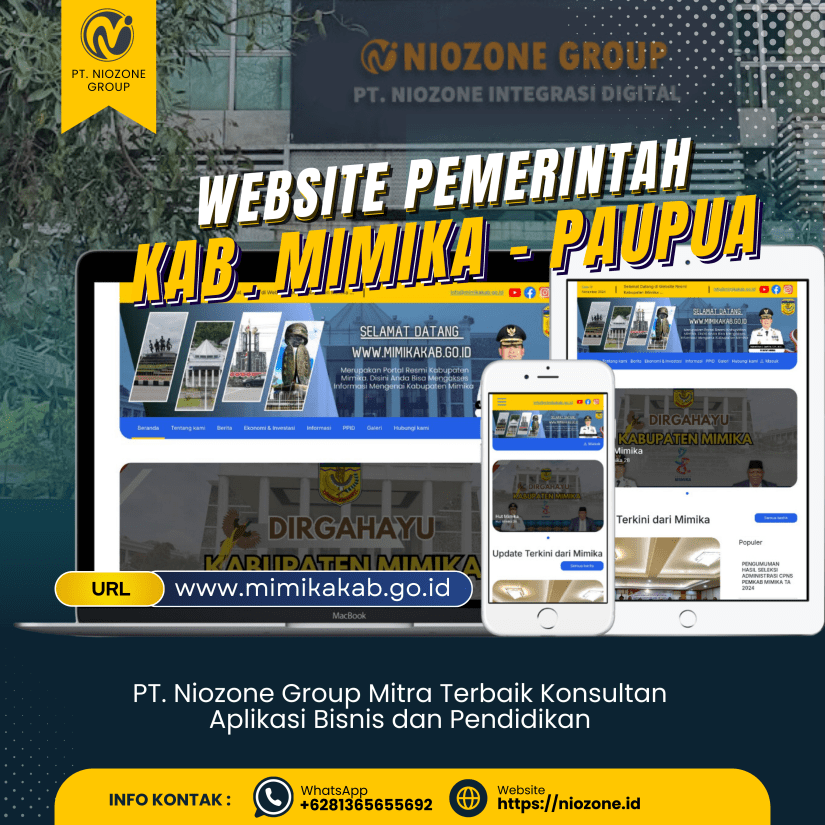 PT. Niozone Integrasi Digital memiliki izin AHU-029212.AH.01.30.Tahun 2023, Telah teruji dan terbukti dalam memberi pelayanan Jasa Pembuatan Website, Aplikasi Mobile, serta Pengadan Server untuk lembaga anda, Serta Terregistrasi pada SIPLah, Epoc LKPP untuk Lelang / Tender Pemerintah dalam Jasa IT. Kami telah memberikan pelayanan terbaik pada pembuatan Sistem berbagai Instansi Swasta & Pemerintah juga sektor bidang Pendidikan Nasional.