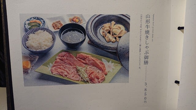 せっかく山形へ来たので、山形牛を頂きたいと思い「焼きしゃぶ御膳」3,850円税込にするか「牛ステーキ」3,850円税込で悩みましたね。