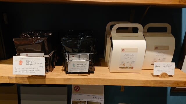 お店入ってすぐの所で、洒落たパッケージに入ったコーヒー豆を購入できます♪