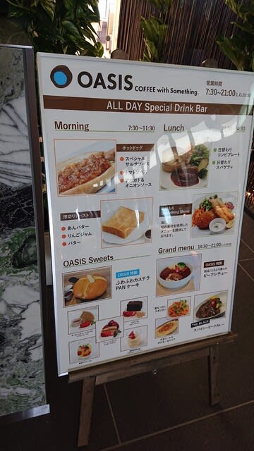 CAFE OASISは、明るく広く綺麗で天井が高い店内で、FreeWi-Fiや電源コンセントを利用でき、ドリンクバーでコーヒーやハーブティー等が自由に飲めてとてもオススメです!