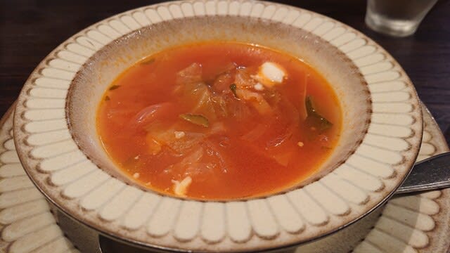 セロリやキャベツ、ズッキーニ、ニンジンがたっぷりと入ったアツアツ野菜スープで、これは出汁がよく効いて美味しかったですね♪