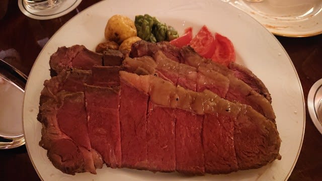 そして厚切りのローストビーフが運ばれますが、この大きさには一同ビックリです♪