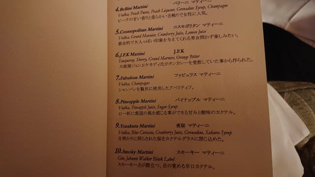 そしてメニューを見るとマティーニが100種類もあるとは驚きましたね♪