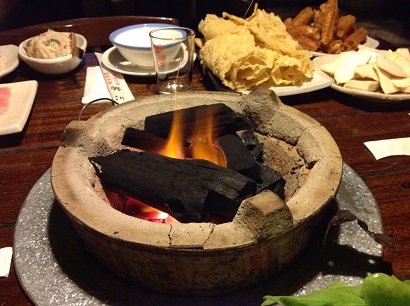 炭火だから、どんなに寒かろうと窓は全開、早く食べて暖まらなければ!!