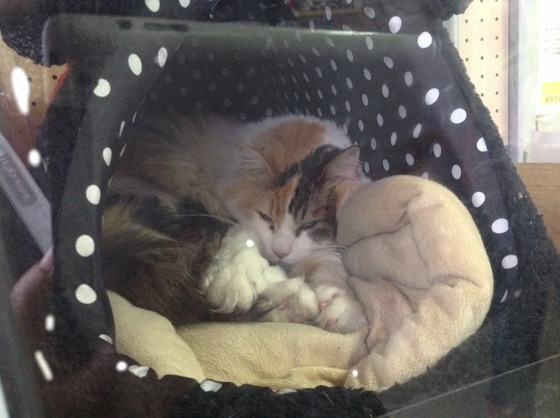 駅のサイトにも、「猫」は「寝子」なので寝ていることが多いですと注意書きみたいなのがあったし、それはもちろん承知ですー。でも、昨日も今日も場所を変えてもここまで徹底的に寝ていたとは~。