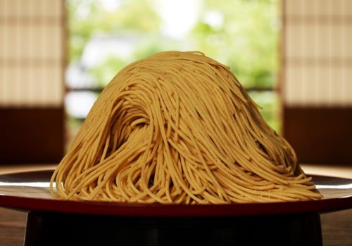 小布施堂の秋の名物「栗の点心 朱雀」は、蒸した栗の皮を除き、素麺状に裏ごししたものを、栗あんの上にふわりと盛った栗の点心です。毎秋、「栗の点心 朱雀」を食べるために、多くの方が小布施を訪れ列をなします。「栗の点心 朱雀」以外にも「モンブラン朱雀」や「朱雀モンブラン」など、お楽しみください。