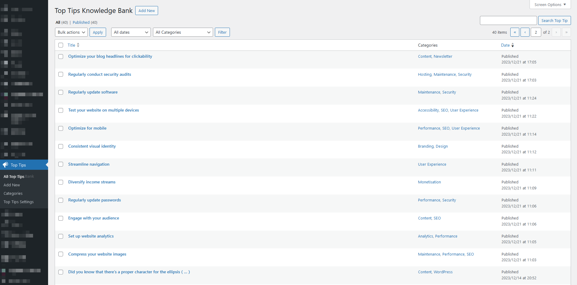 top-tipsto the/wp-content/plugins/directory. - Activate the plugin through the ‘Plugins’ menu in WordPress.