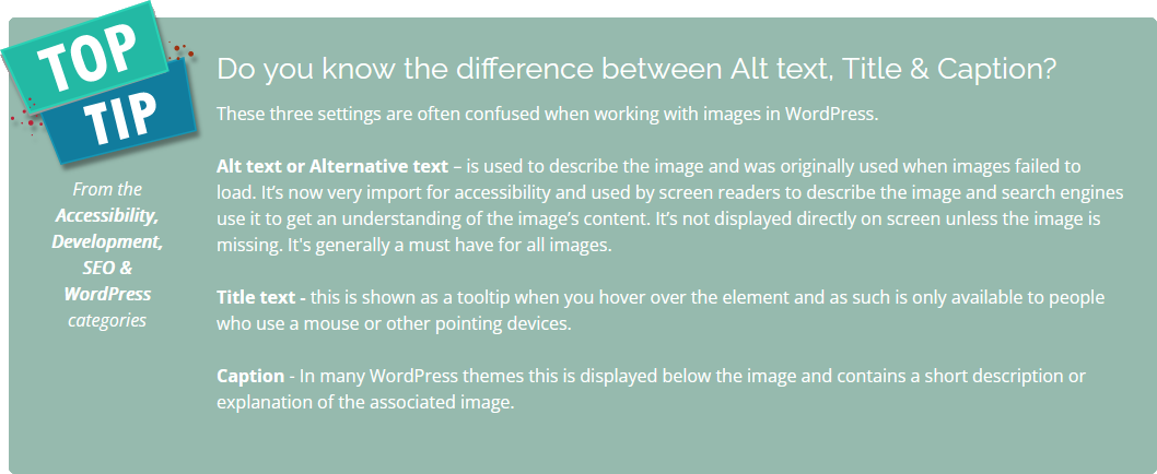 Create your own category-controlled ‘Top Tip’ to display next to relavant posts.