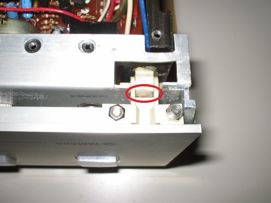 YAMAHAのA-1でござりまする。ぢつは、このデザインが気に入っており、こやつは3台目でござりまする。見てのとおり、フロントパネルが外れかかっておりまする。背面はっと・・・。あれれ?スピーカー端子が追加されておりまする。RCA端子のサビ具合からも、使われなくなってから、かなりの時間が経っていることが推測されまするな・・・。外れかかったフロントパネルのヒンジ部分。ネジが固くて廻し辛ぇっす。落としたのか筐体のア...