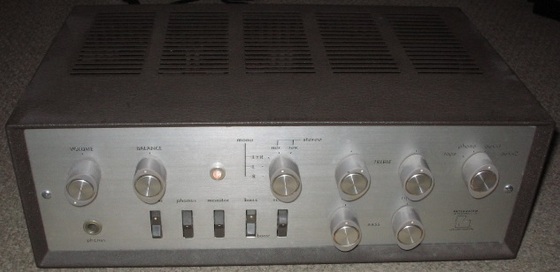 いつもどおり、開腹作業の開始でござりまする。1番目立つのは、パワトラ冷却用のヒートパイプでござりまする。リレーは接点が千鳥になっているタイプ。トランスはトロイダルのようでござりまするが、かなり小さめでござりまする。(直径約10cm、こんな小っせぇの見たこと無い)フロントパネルは軟質プラスチック製(?)で、パワーインジケーターは砲弾型のLEDが使用されておりまする。スイッチボタンはサビ取り作業のため、外し済...