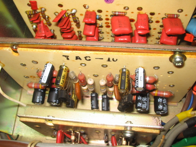 まぁ、2台目なンデ、チャチャっとヤッツケられるかナァ? まづはぁ、軽ぅ~く確認からでありんすネ♡ をっ? 毎度のチューブラ電解がFOXぢゃありませなんダ♪ 隣のブロック?は82-2って刻印が・・・。 一度修理されタ??? 鳥瞰図~ 中央の3枚基板はぁ・・・、 左 イコライザ 中 トーン(CR型?) 右 バッファになるのカナ?パッと見、左右の基板は同じに干汁(笑)んすケド。AST-215みたいに全入力がイコライザ経由...