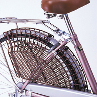 後ろ車輪にドレスガードを装備していない自転車には、必ずお子さまの足の届く範囲を覆うドレスガードを取付けてください。