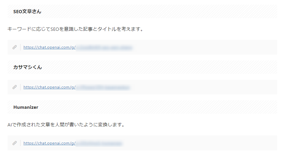 - GPTsのURLに関して第三者への公開を固く禁止します。