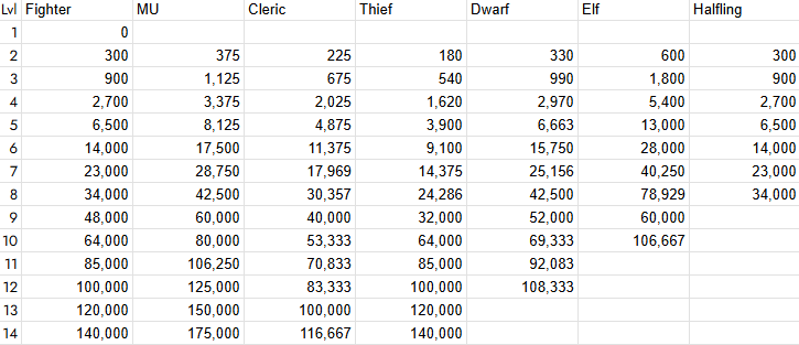 Of course, this is also a lot of math. So if your party would rather not fuck around with it, you can just go with 100xp per HD. Or, idk, less, like Gary did, which carried over into B/X and AD&D. Maybe he was right after all, or maybe they wanted to discourage fighting by removing it from the XP progression. Who knows.