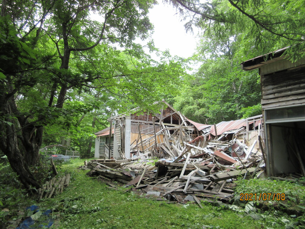 手前の建物は潰れていますよ。雪の重みで潰れたのか?それとも経年劣化で自然と潰れたのか?