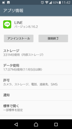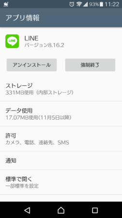 すると、「許可」の項目に「ストレージ」が表示され、LINEでストレージの使用ができるようになります。