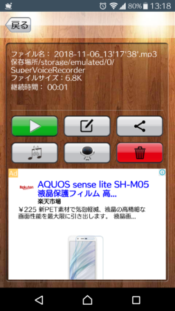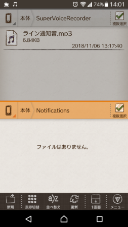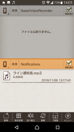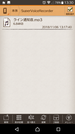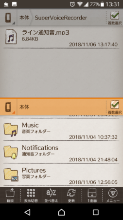 「本体」➞「Super Voice Recorder」➞「ライン通知音.mp3」を表示します。