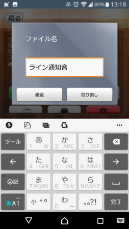 試しに「ライン」と録音します。 - 録音されたファイルを分かりやすいように「ライン通知音」に書き換える。