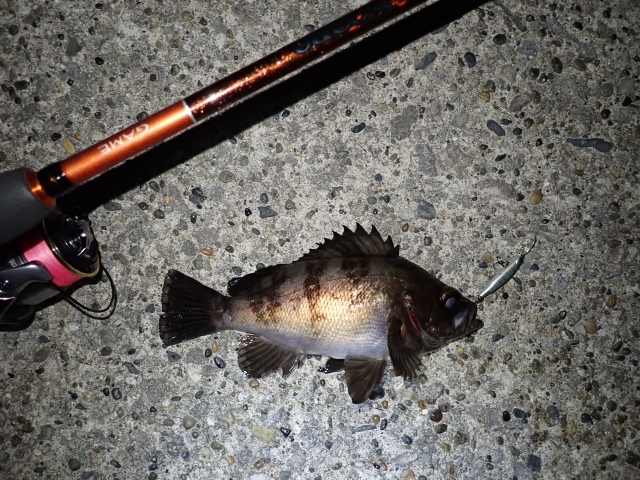その後セイゴ数匹とメバル数匹を釣り歩き、雨が降り出したところで終了。