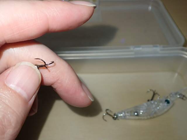 トレブルフックはたも網に絡みやすくて外すのに時間もかかるので、個人的には小型ルアーにはダブルフックが好みです。買ったとき付いてるフックがだめになるまでは変えないですけど(笑)