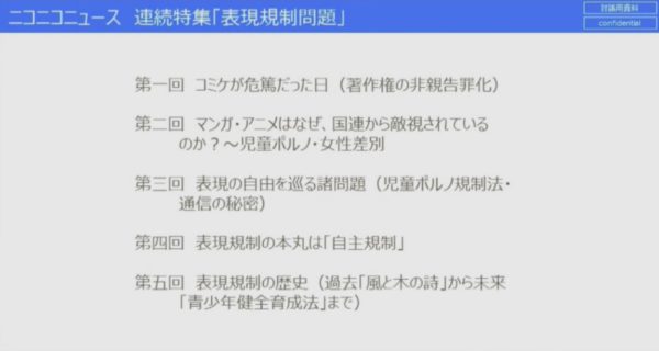 マンガやアニメなど「表現の自由」を守る活動に取り組む「表現の自由を守る会」の山田太郎氏を案内人として、「著作権の非親告罪」「有害図書指定」「国連勧告」「児童ポルノ禁止法改正」など表現規制のアジェンダを考える連続企画(全五回)がスタート。
