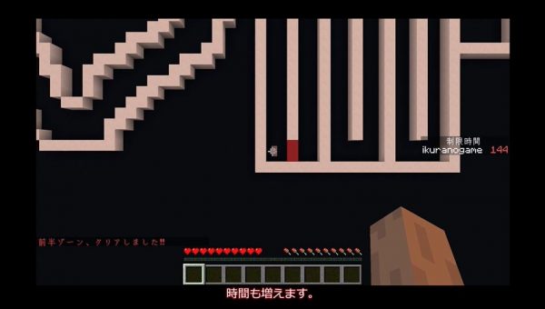 村人とプレーヤーの動きが連動していてイライラ棒を再現しています。制限時間は80秒。本家にならい60秒にしたかったそうですが、あまりにも厳しい数字のためやめました。