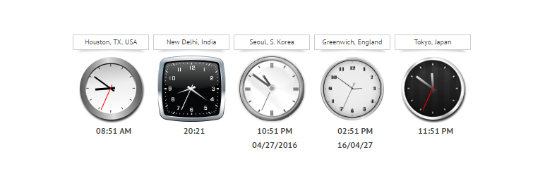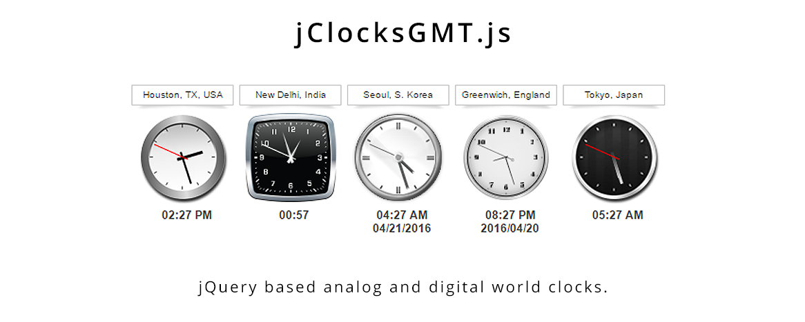 jClocksGMT is a jQuery analog and digital world clocks plugin based on GMT offsets.