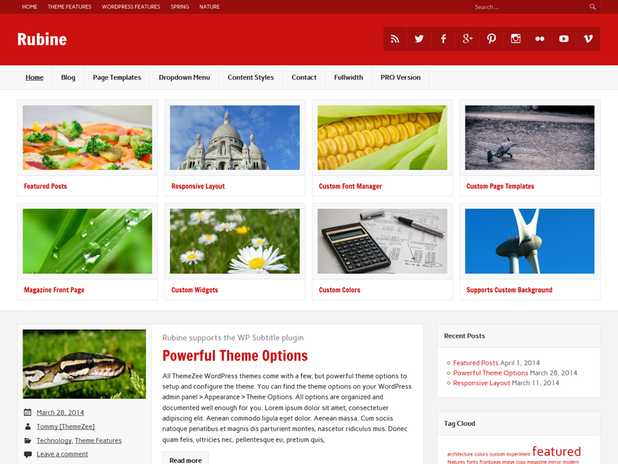 Rubine Lite is a clean and retina-ready magazine theme created with usability and simplicity in mind. The theme offers a gorgeous featured content area on the home page to highlight your most important posts. Of course the design is fully responsive and makes your content readable on every device.