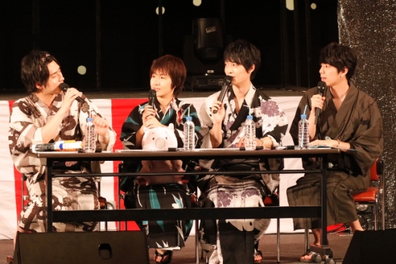 ステージには屋台など夏祭りをイメージしたセットが並び、名シーンのセリフと共に浴衣姿のキャストが登場。