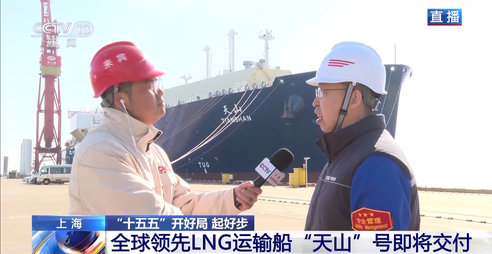 总台记者肖冰毅介绍,运输本月底即将交付使用的船天17.4万立方米大型LNG运输船“天山号”体量惊人,这艘船总长295米、山号宽45米,十五五甲板面积相当于3个标准足球场大小。开好