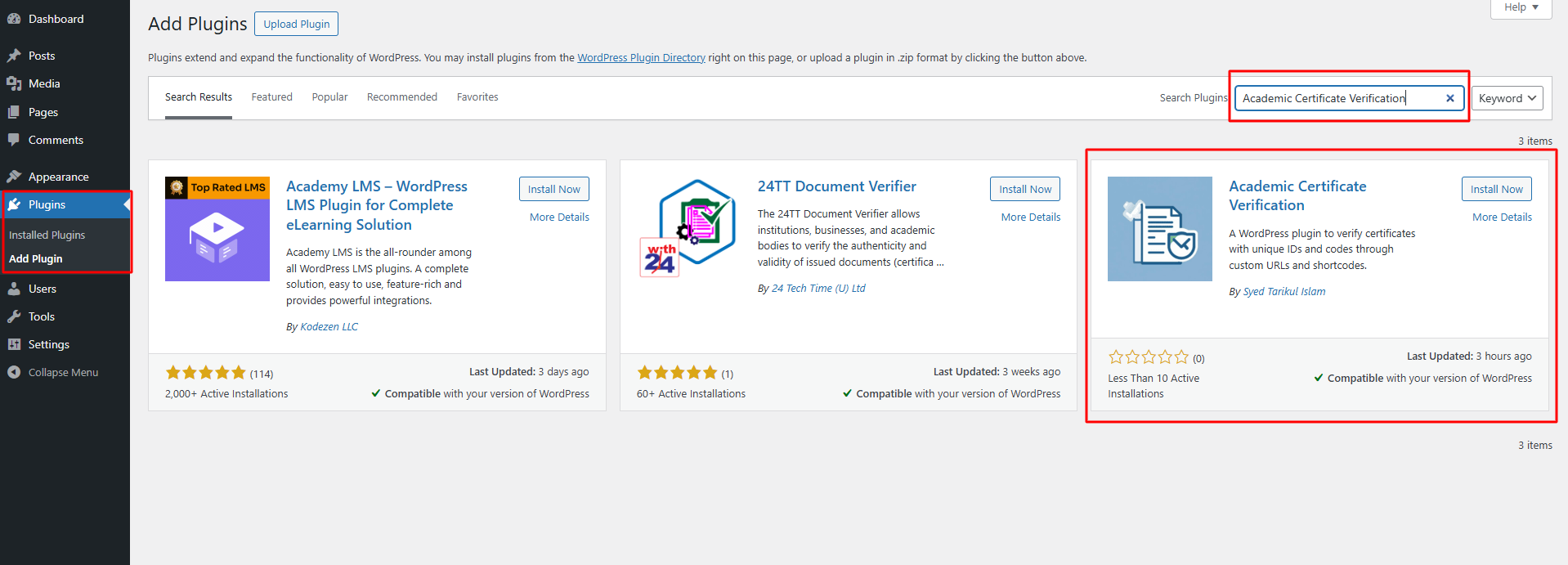 Academic Certificate Verification is a comprehensive WordPress plugin that allows you to create and manage a certificate verification system on your website. Users can verify the authenticity of certificates by entering a certificate ID and code, or by visiting a custom verification URL.