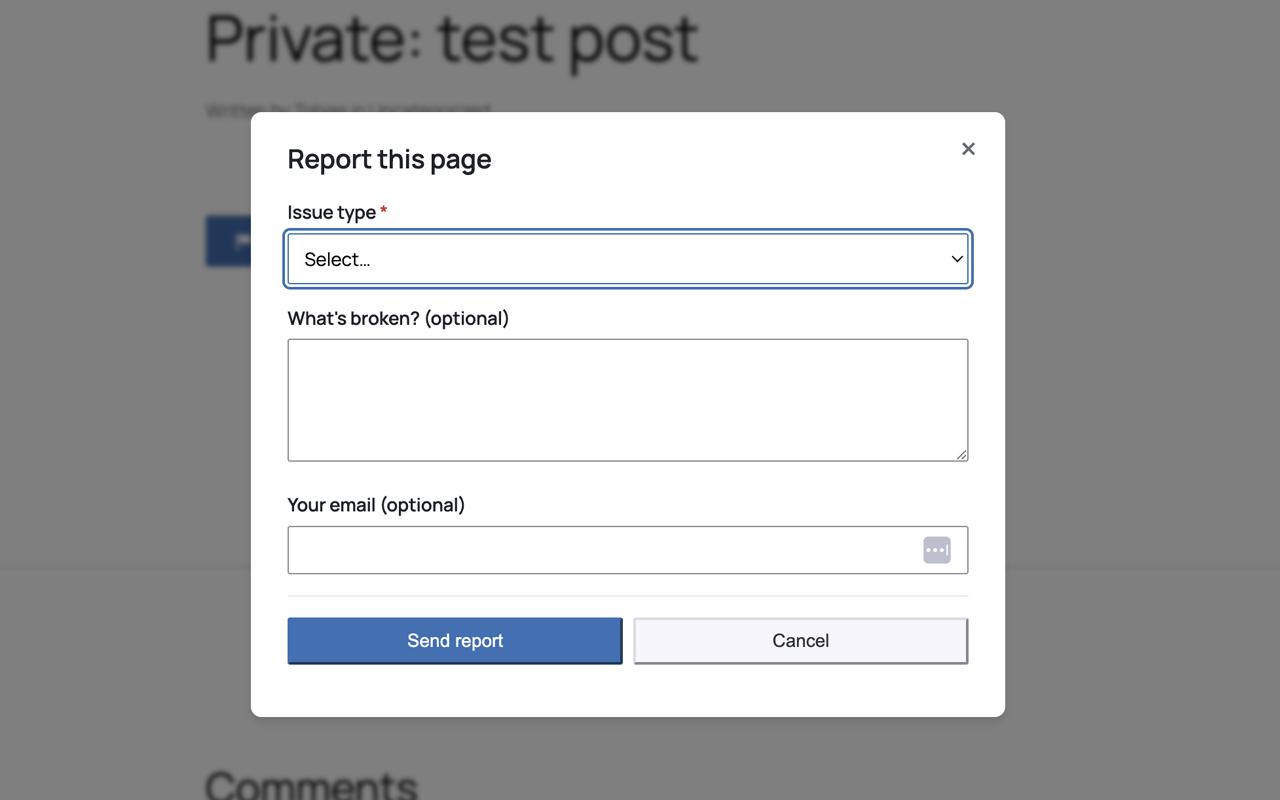 - Report Issue (LinkSentry) Adds a Report an Issue button and modal for readers to report broken links, downloads, or images.