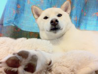 耳だけ茶色い白柴「ぱん」(♀)7才とフルタイム共働き夫婦の生活です。
