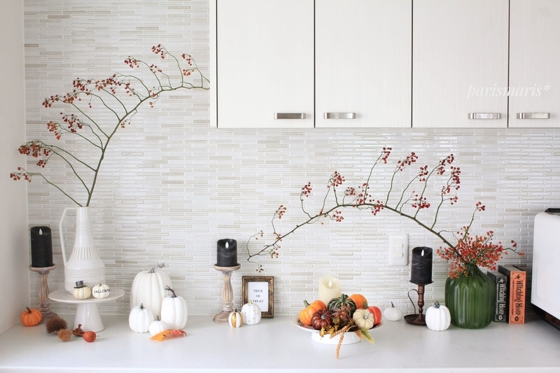 待ちわびる秋本番への気持ちを託して、リビングのしつらえをハロウィン仕様にしました*