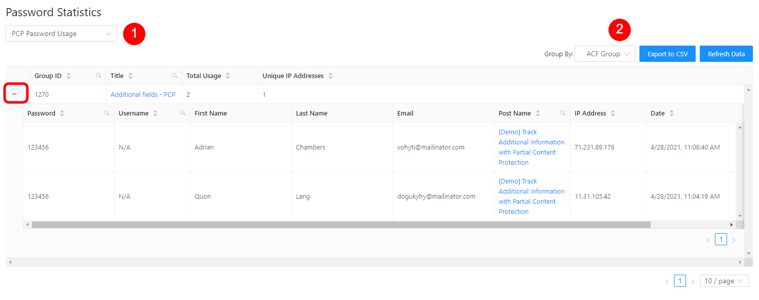 Then switch to the “PCP Password Usage” table and select to display information based on “ACF Group”.