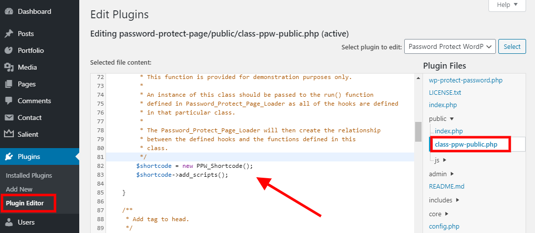 - Go to Plugins >> Plugin Editor
