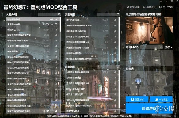 最终幻想7重制版MOD整合版工具下载v1.1.0.3,使用后就能可以让广大玩家一键快速安装、配置、卸载最终幻想7重制版mod,小白用户也能用,非常方便快捷。