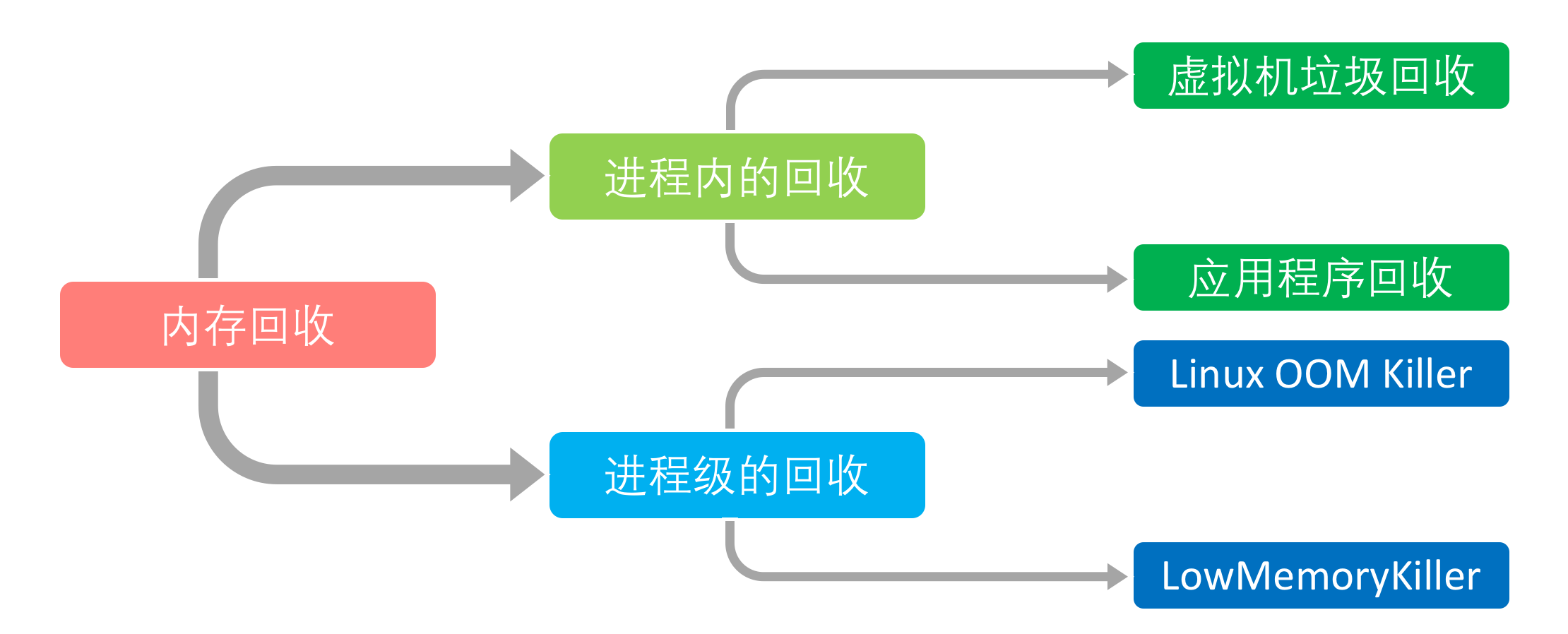 为了使系统能够继续运转不至于卡死,系统会尝试杀死一些不重要的进程来进行内存回收,这其中涉及的模块主要是:Linux OOM Killer和LowMemoryKiller。