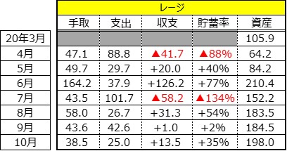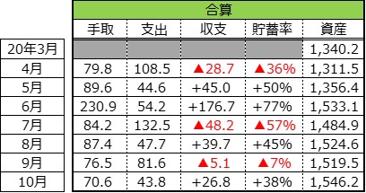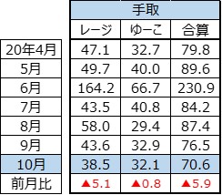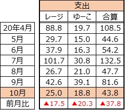 20年10月度の収支をご報告いたします。