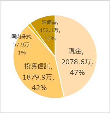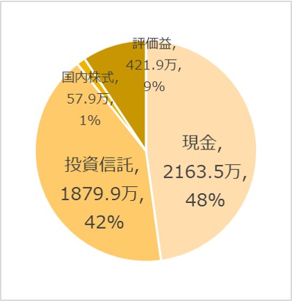 一方、評価益が421.9万円出ており、評価益込み総資産は4,523.3万円でした。