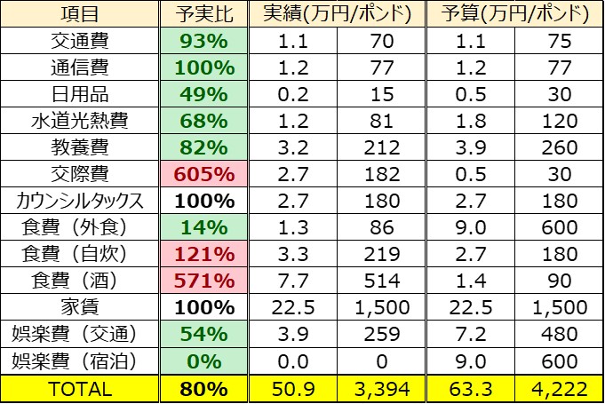 今月は海外旅行をしなかったこともあり、予算内の支出で収まりました。