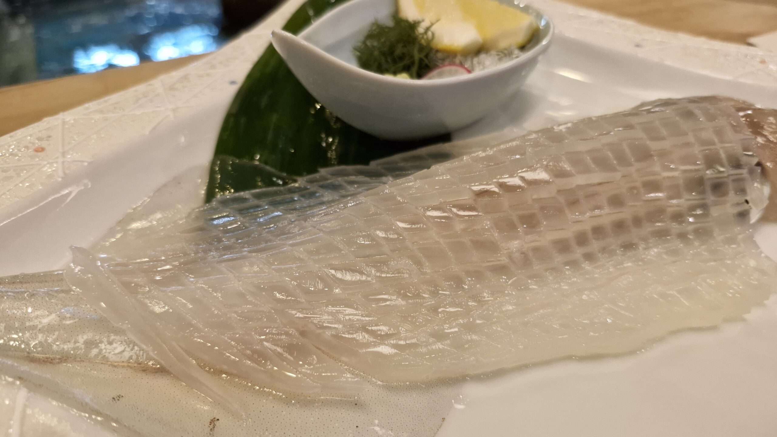 塩と並べると透き通った身がより強調されますね!味も、塩によってイカの甘み・旨味が増幅され、口の中が幸せいっぱいになりました。